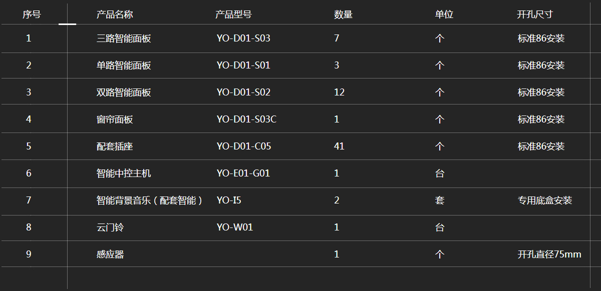 悠達智能產品配置清單